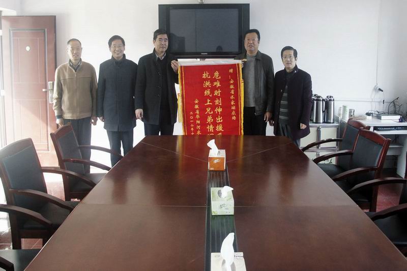 11月29日,华阳河农场场长谢广和、党委书记王洪领队到水家湖农场,赠送“危难时刻伸出援手,抗洪线上兄弟情深”锦旗,表达危急关头兄弟来援的感谢之情。水家湖农场领导刘国强、王计文、汪升洪热情接待。