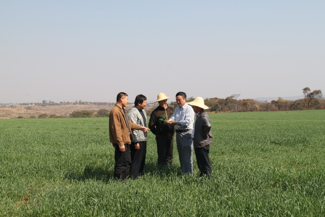 7月4日,皖津公司总经理韩大鸣带领副总经理何宏顺及温亚尼农场管理技术人员,深入田间实地查看了小麦苗情长势、追肥化除等情况。由于第一次喷灌及追肥打下了良好基础,温亚尼农场所有地块均出苗苗齐,长势很好,特别是早喷地块苗壮势旺,已开始拔节孕穗,显现出丰产特征,化除效果也较明显,大部分田间杂苗均已萎蔫。就下一步工作,韩大鸣指出,要进一步做好灌溉补水和追肥化除工作,确保小麦生长用水和田间纯度;要认真做好小麦田间生长记录,针对不同地块、不同苗情制定不同的田管方案,为指导小麦生产提供理论基础依据。(杨杰)
