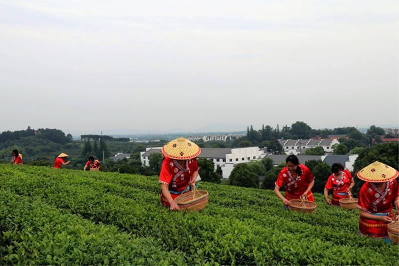 随即,活动嘉宾一行又登上大巴,来到了位于敬亭山北麓的葫芦山,这里是敬亭绿雪标准化茶园生态基地,规模化连片茶园面积达2000多亩。茶场正在这里打造休闲农业观光园,站在山顶极目远眺,江南美景尽收眼底。