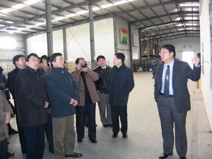 为学习先进垦区工作经验,今年安徽全省农垦工作 会议期间,2月7-9日组织了与会的各场主要负 责人等有关人员集体赴上海农工商集团公司参观学 习,考察团一行听取上海农工商集团关于改革发展 有关情况的经验介绍,实现参观了上海农工商集团 的鲜花港、蔬菜出口基地、森林城等有关现代农业 生产基地,使考察团受到很大的启示。(图为参观 现场,听取上海垦区领导介绍)